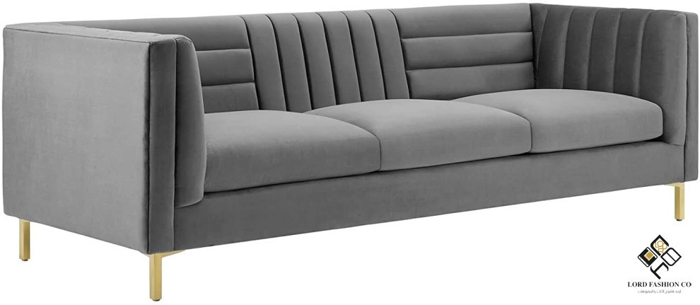The undeniably elegant form doesn't sacrifice on comfort. Velvety texture envelopes soft crescent shape perched on champagne finish legs. We love the way it looks with practically anything, but especially the African-inspired stools.